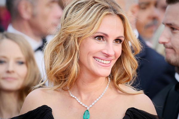 Roberts sizzled in a vintage-inspired black gown that featured off-the-shoulder cap sleeves and a plunging neckline. The actress wore perfect suit to her along with an emerald pendant on a diamond chain and a matching ring.