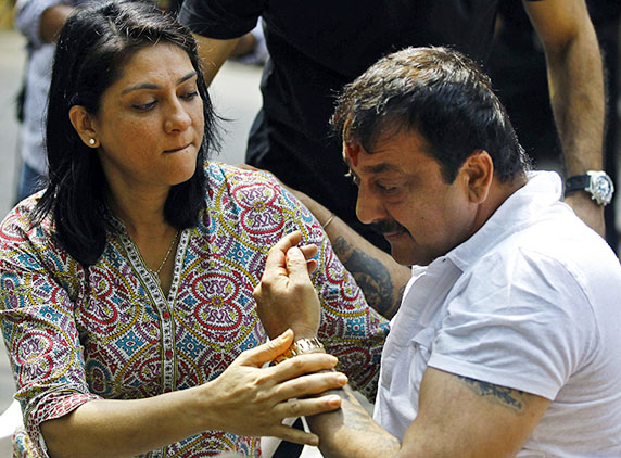 Making it as a special mention, a huge crowd comprising admirers and the media were known to be awaiting for his arrival outside the jail premises in the heart of the city. Sanjay was spotlessly clean dressed in a unexceptionable white kurta, a pair of jeans and a saffron “tilak” on his forehead while on his way from his apartment Imperial Heights at Pali Hill in Bandra (west), Dutt was known to have visited the Siddhivinayak Temple with his wife Manyata.