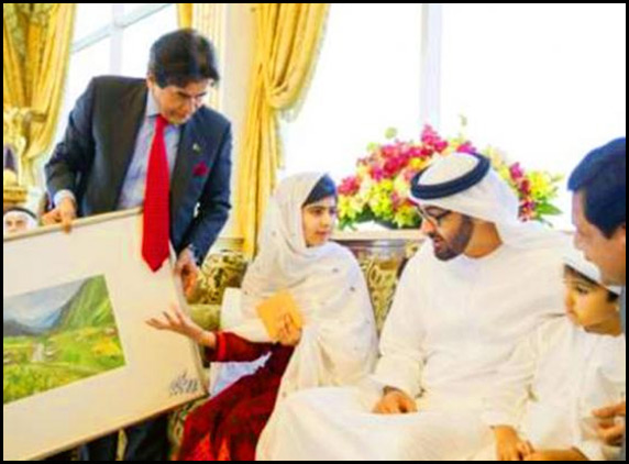 General Shaikh Mohammed bin Zayed Al Nahyan, Crown Prince of Abu Dhabi and Deputy Supreme Commander of the UAE Armed Forces, on Monday received at Al Bahr Palace Pakistani girl, Malala Yousafzai, who was attacked last year in her village of Mingora, over calling for girls' education.