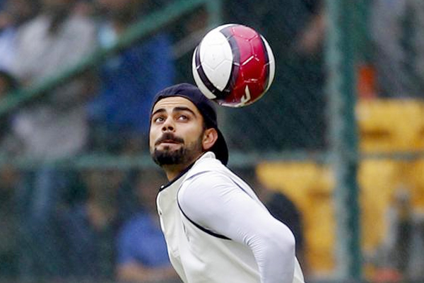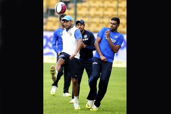 When rain delayed the start of the fourth day of the second test match at M Chinnaswamy Stadium in Bengaluru, between Indian and South Africa, on 17 November 2015, India cricketers like Virat Kohli, Murali Vijay and Cheteswara Pujara, R Ashwin, Ishant Sharma had a warm up on the ground. Most Cricketers played with Soccer ball as they waited for the resumption of the play.